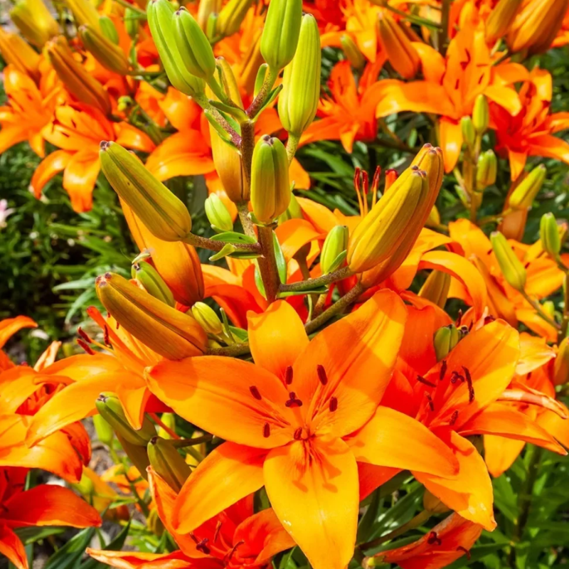 Adaugă energie grădinii tale cu Crinul Asiatic Orange Summer! Flori de un portocaliu intens, saturat, pe tije extrem de viguroase. Bulbi giganți, calibru 20/22, ce garantează o înflorire abundentă încă din primul an. Ideal pentru borduri colorate și flori tăiate.