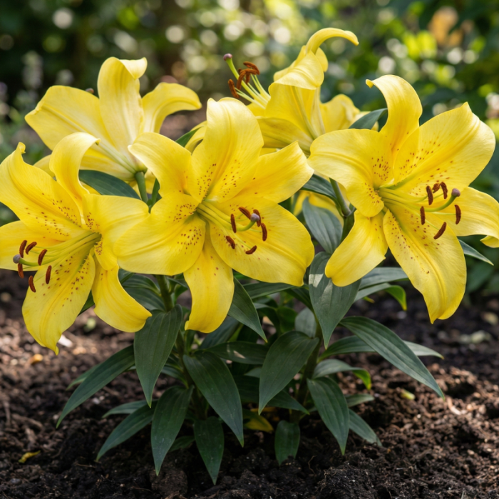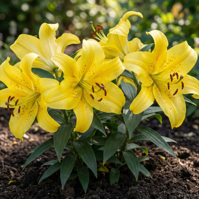 Crinul Gold Party aduce soarele la tine în curte! Flori orientale imense, cu petale largi de un galben solar și parfum divin. Calibru 22/24 pentru un spectacol de aur în fiecare vară.