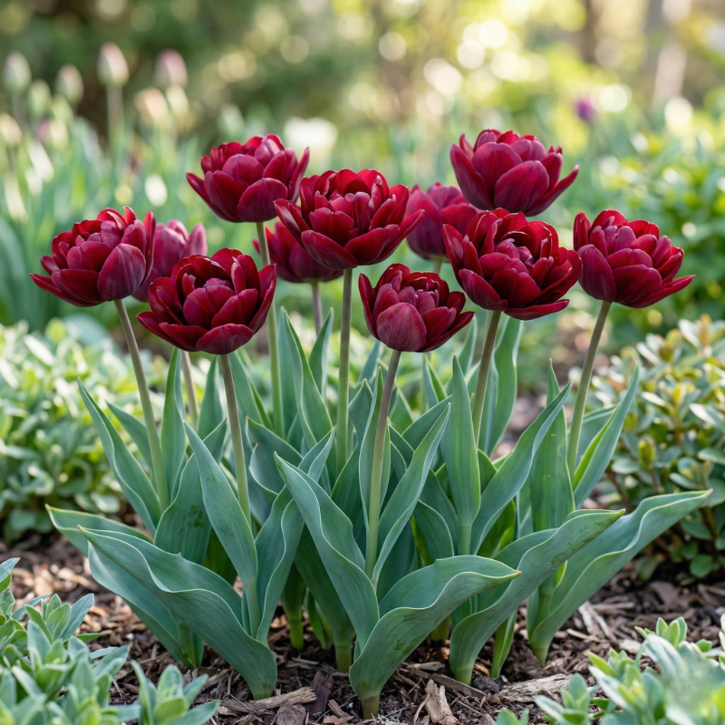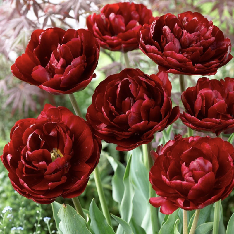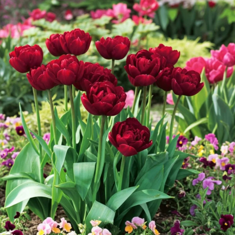 Transformă-ți grădina cu Lalelele Uncle Tom! Flori duble, spectaculoase, cu aspect de bujor și o culoare roșu-granat intens. Bulbi mari, calibru 12/+ cm, pentru o înflorire bogată și tije rezistente. Ideale pentru borduri elegante și buchete de lux.