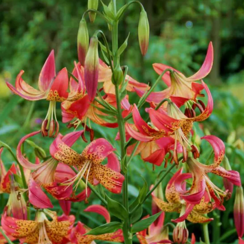 Descoperă raritatea absolută: Crinul Fusion. O fuziune exotică între crinul trompetă și crinul leopard. Flori unice, roșu-portocaliu cu galben la interior, calibru 20/22. O piesă de colecție!