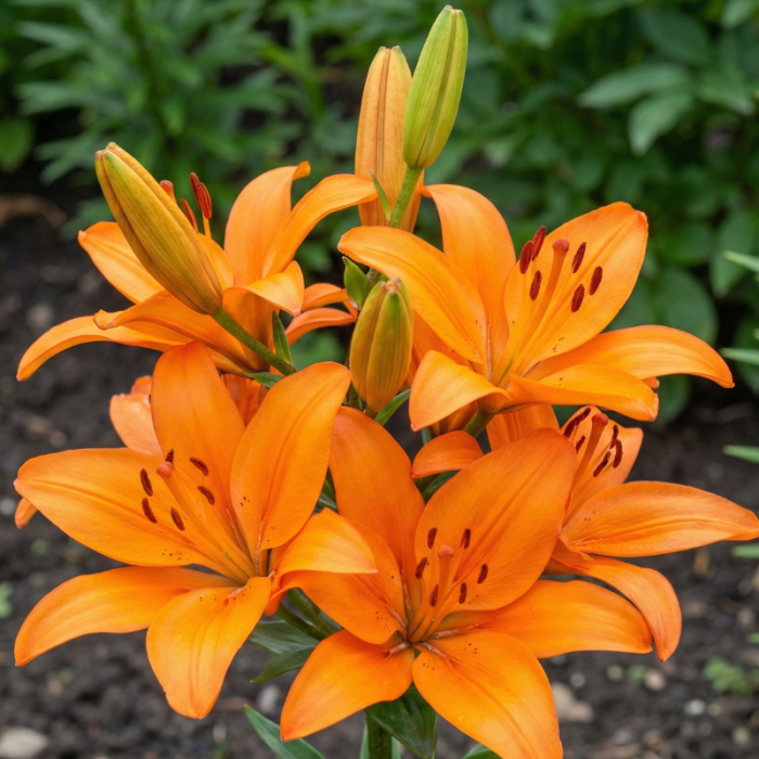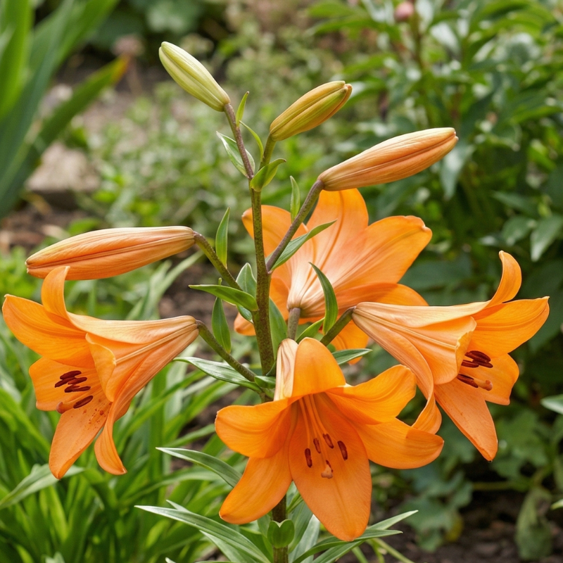 Bucură-te de nuanțe calde cu Crinul Orange Ton. Un soi rezistent, de calibru 18/20, perfect pentru naturalizarea grădinii. Oferă o înflorire constantă și tije rezistente an după an.