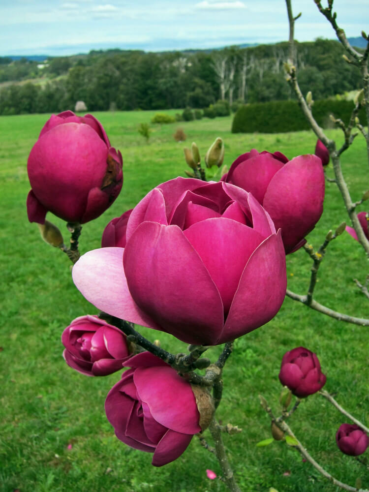 🌸 Floare: Roșu-bordo închis, catifelată.MAGNOLIA BLACK TULIP este recunoscută pentru florile sale de un bordo-purpuriu extrem de închis, având formă de cupă perfectă, asemănătoare unei lalele negre. Petalele sunt groase, catifelate și își păstrează forma globuloasă pe tot parcursul înfloririi. Este o piesă centrală spectaculoasă pentru orice peisaj, oferind un impact vizual dramatic în fiecare primăvară.